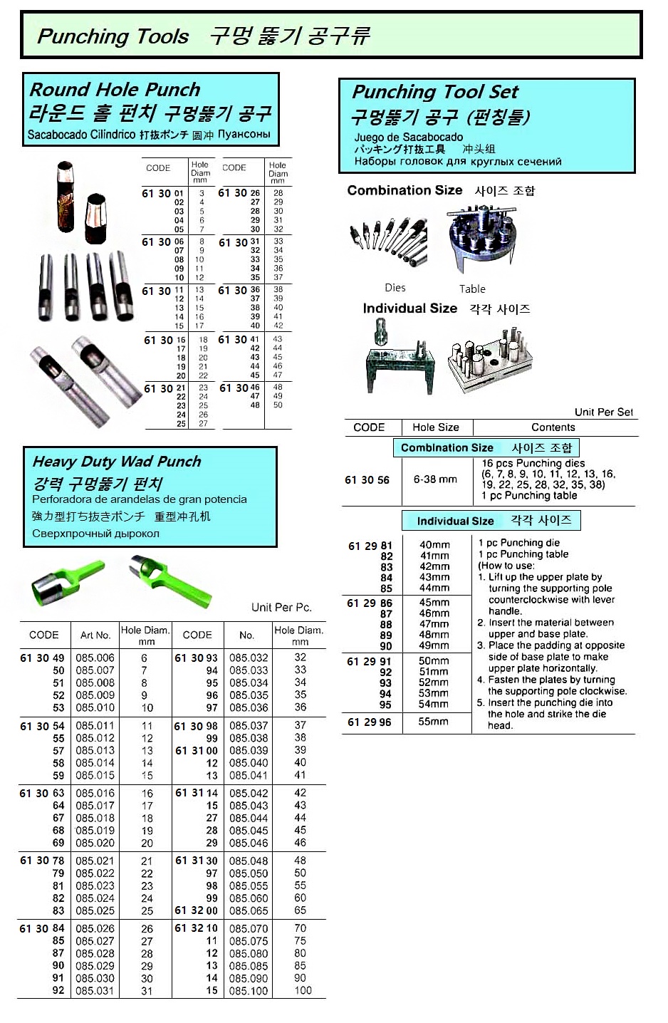 ÆÝĪ Åø ¼¼Æ® , PUNCHING TOOL SET DIES & TABLE, 6 - 38 MM, 16'S